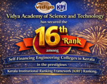 Vidya CSE Student proved it again that they are capable of dreaming big and faring well in life. Nandakishor T (S8, CSE Dept) proved his mattle by securing 8th position in the All India Aptitude...
