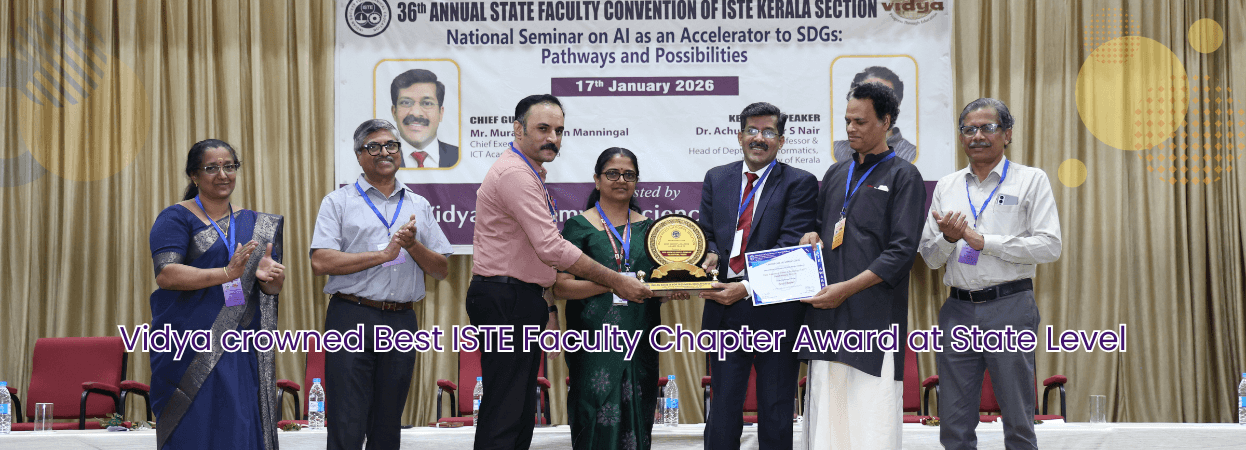 Vidya receives Best ISTE Faculty Chapter AwardVidya continues to get accolades with Best Faculty Chapter of ISTE Kerala Section -