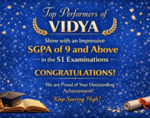 Vidya's top performers shone brightly by securing an impressive SGPA of 9 and above in the S1 examinations